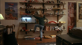 game, when Kevin brings down Buzz's shelves, he doesn't get a pounding;